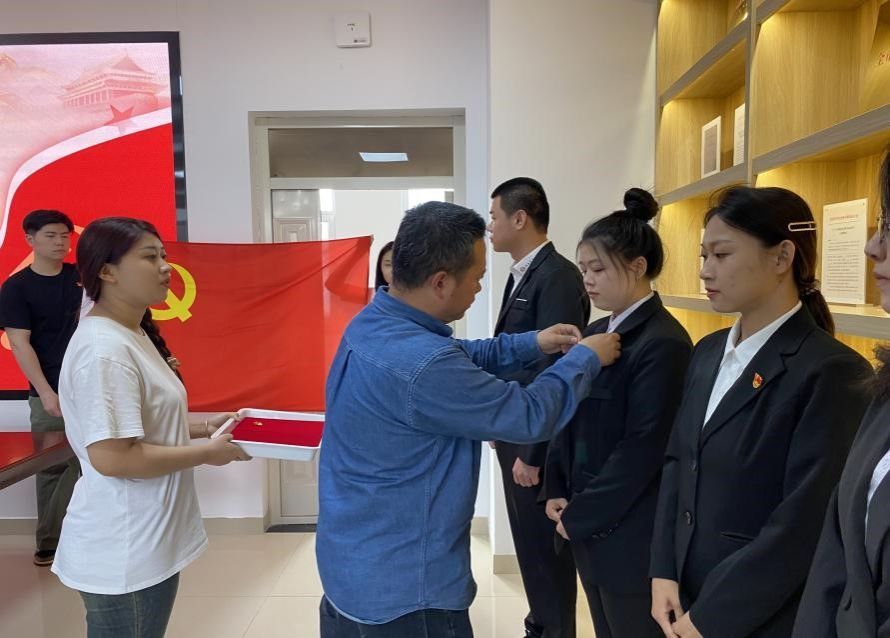 随后,范炜为新党员佩带党徽,并且进行了入党宣誓仪式。范炜代表本科生党支部对新党员表示祝贺,希望新党员要坚定理想信念,终始以党员标准严格要求自己,无论身处什么岗位,都要以实际行动践行初心使命,努力发挥党员的模范带头作用。