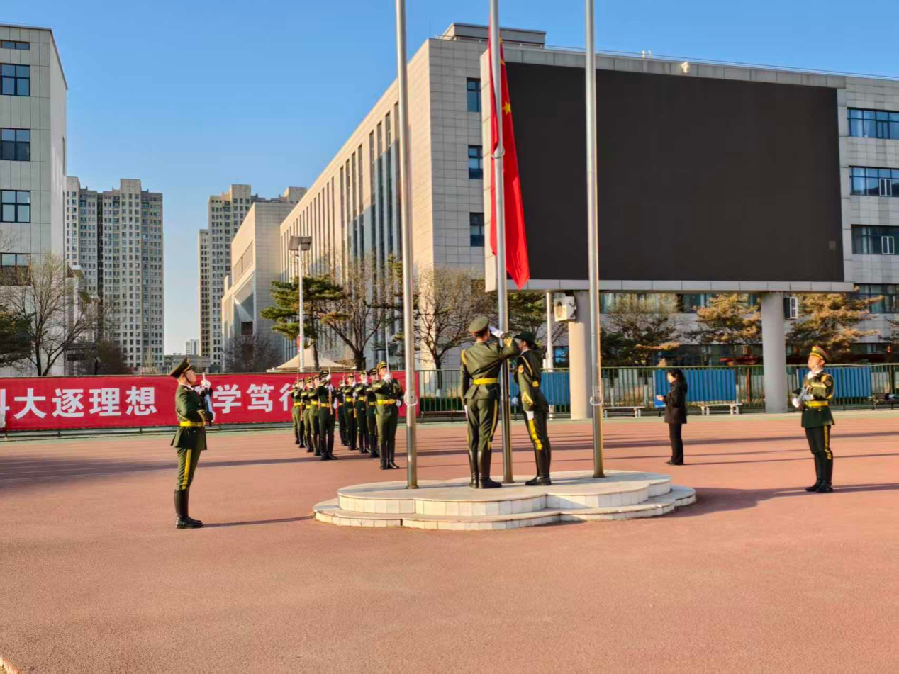 上午7:30,国旗护卫队迈着整齐的步伐护卫五星红旗入场。在庄严的国歌声中,五星红旗冉冉升起,全体师生庄严肃立、行注目礼,将对祖国的赤诚热爱、对学校七秩华诞的美好祝愿融入铿锵旋律。
