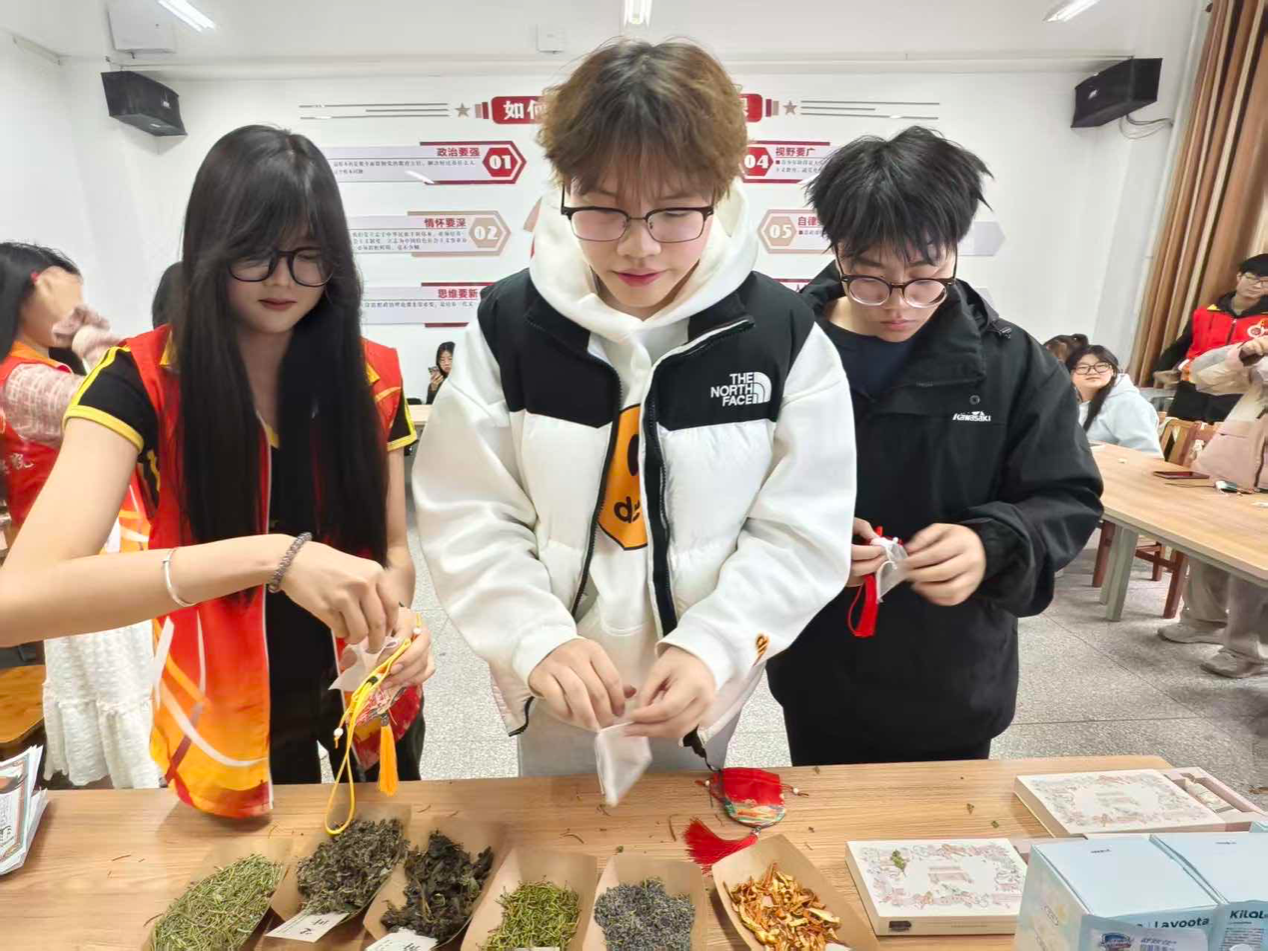 活动现场热闹非凡,精心设计了多个趣味十足的心理互动游戏让同学们在轻松氛围中学习心理知识、提升调适能力。在心理健康知识挑战赛中,同学们限时答题,以赛促学、检验知识储备;情绪骰子环节,大家用成语表达对应情绪,在互动中感知情绪、增进理解;香囊DIY活动里,同学们写下心愿烦恼,亲手制作专属香囊,在创作中舒缓压力;数字炸弹游戏考验着逻辑与默契,在趣味博弈中拉近距离;报纸成语接龙则让大家在不断缩小的场地上比拼反应,现场欢声笑语不断。