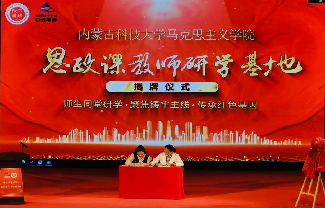 副院长杨德桥、副院长金海斌协同思政课教师、辅导员以及本科生、研究生党员和入党积极分子,赴白云鄂博矿区草原英雄小姐妹事迹展览馆开展“思政课教师研学基地”命名和授牌仪式,并进行思政课教师研学活动。