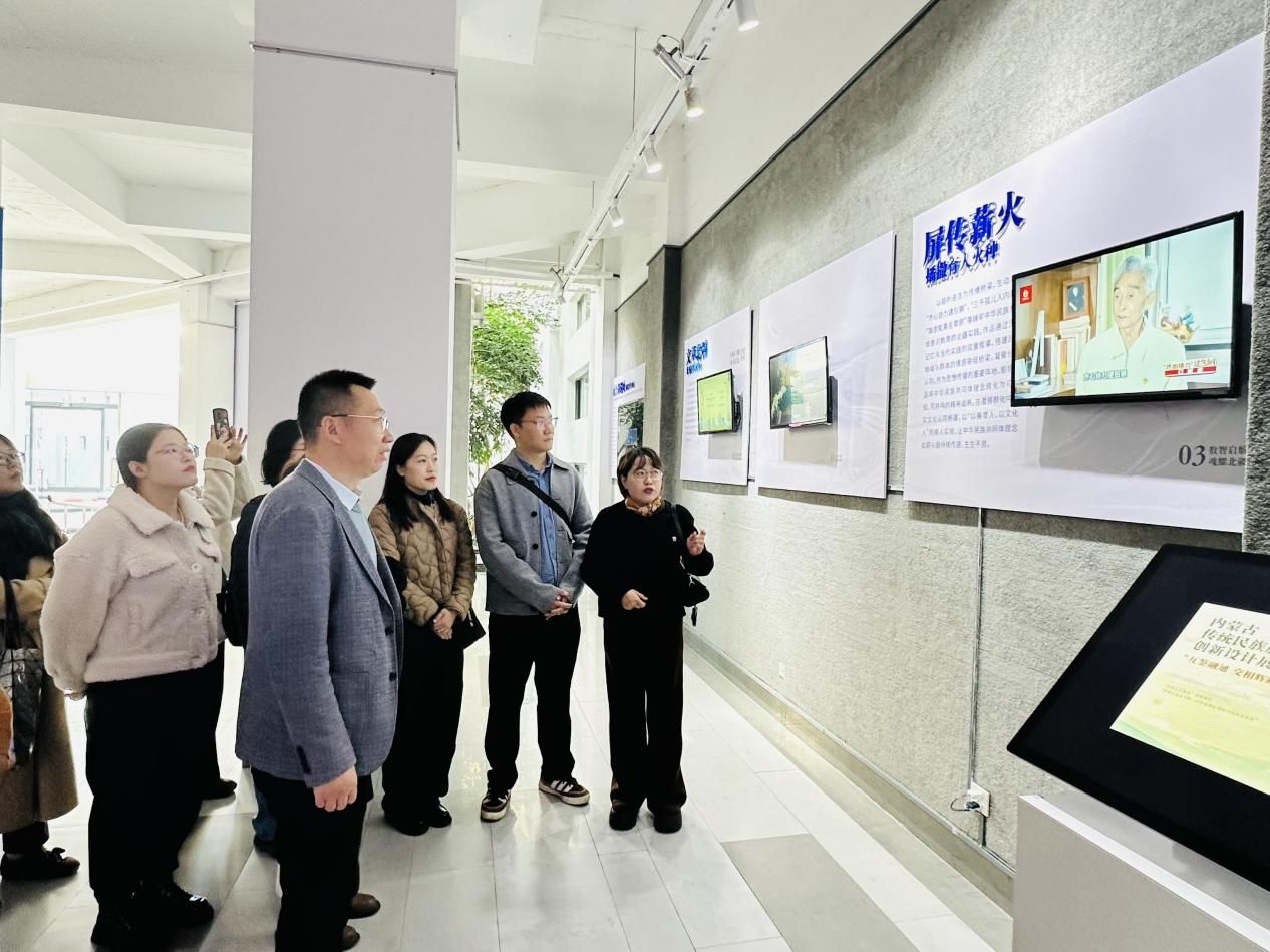 研学人员一行观看了“理论铸魂固根脉 实践赋能耀北疆”为主题的宣传教育纪录片,参观了理论研究成果展区、理论指导实践成果展区、文创成果展区、数字成果展区等,特别关注到我校铸牢中华民族共同体意识研究领域的代表性成果,在研学中不断凝聚共识,研讨中继续开拓思路。
