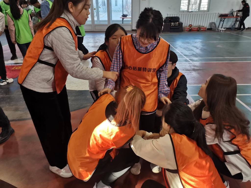 上午8:00举行开营仪式,冯大彪老师开营致辞,并带领学生进行热身活动。接下来,同学们被分成三支队伍,采取比赛方式完成团队任务。活动过程中,通过以团队合作为基础开展的“达芬奇密码”“极速60秒”“鼓动人心”“挑战不可能”等活动,全体学生干部深刻体会到了团队协作的重要性,加强了学生干部之间的交流与合作,提高了学生干部的领导力、凝聚力、创造力。活动最后,王海朋老师对全天素拓活动进行总结分享,素拓活动取得圆满成功。