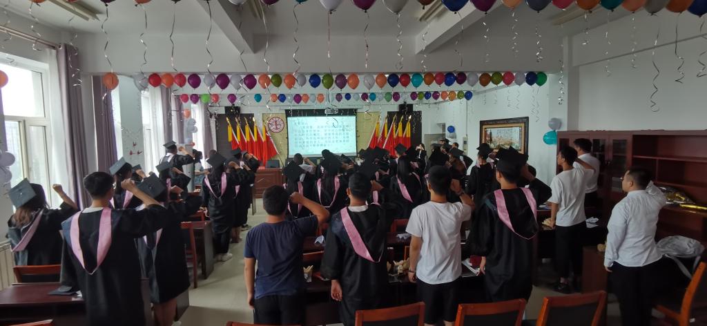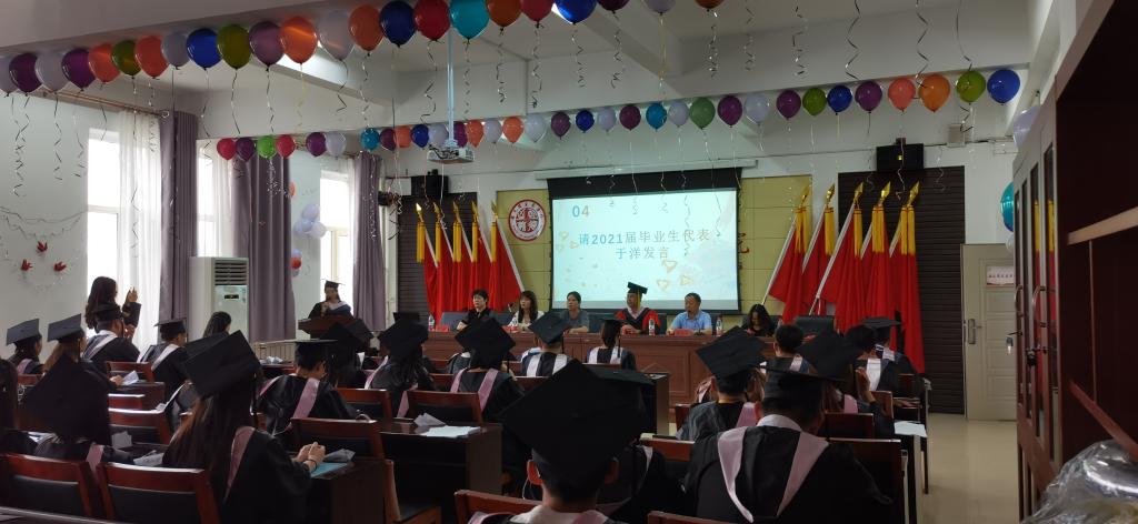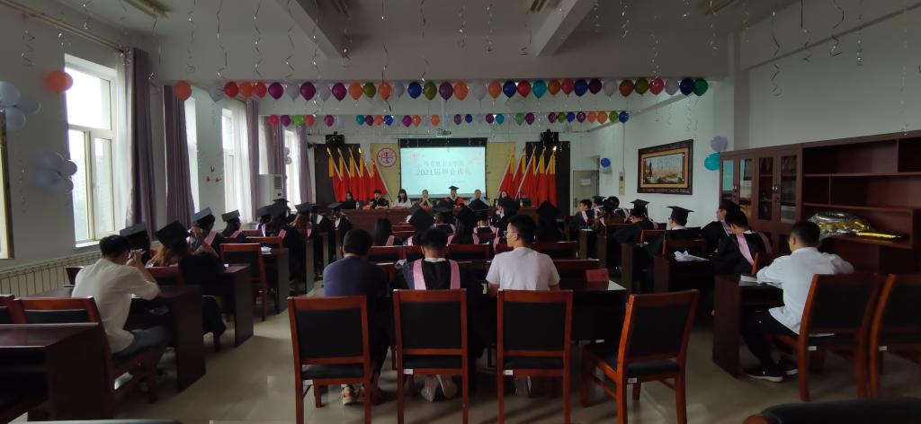 在腾飞楼C509会议室隆重举行2021届本科生毕业典礼。院长张光存、副院长许丽丽、党总支副书记杨永旺、副院长兼教授委员会办公室主任柴艳莎,毕业班班主任以及全体毕业生参加典礼。