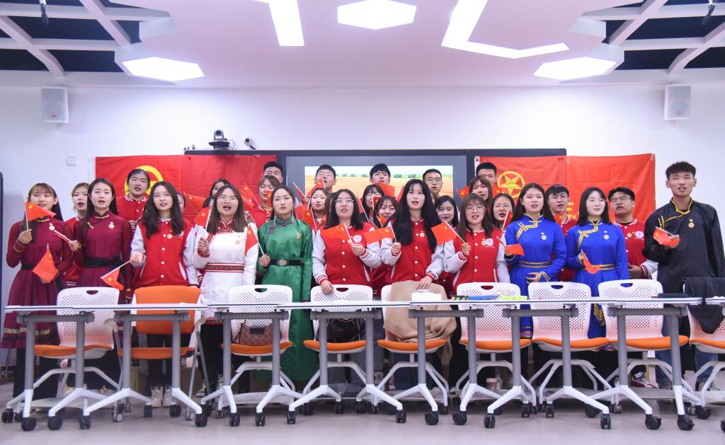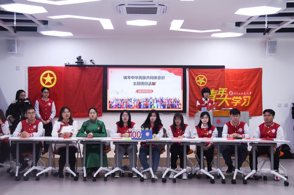 思政2020团支部举行了一场别开生面的主题团日活动,青年学子用特有的方式,重温百年党史,让民族团结之花在校园绽放。校党委书记安胜利、团委书记韩冰、团委副书记张利敏、壹贰博