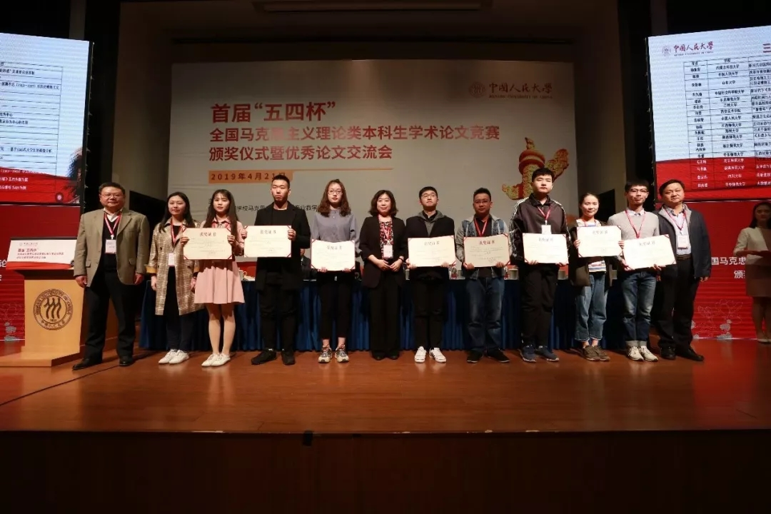 为纪念五四运动100周年和庆祝中华人民共和国成立70周年,培养、选拔马克思主义理论类专业优秀人才,教育部高等学校马克思主义理论类专业教学指导委员会举办首届“五四杯”全国马克思主义理论类本科生学术论文竞赛。此次学术论文竞赛共收到来自全国高校学生500余篇有一定质量、特色和新意的学术论文,经过专家组评审选出一等奖4篇,二等奖9篇,三等奖17篇及优秀奖若干。