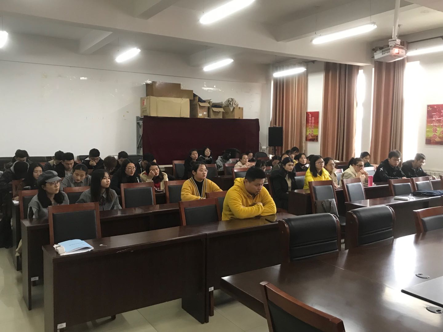 杨永旺首先介绍了学校就业双选会的相关安排,并提出参会的一些注意事项。刘玉明、许丽丽、陈伟分别从“就业才是硬道理”、“转变传统就业观念”、“参加双选会需注意的细节”等方面,鼓励毕业生们做好就业的相关准备,积极参加学校组织的就业双选会。