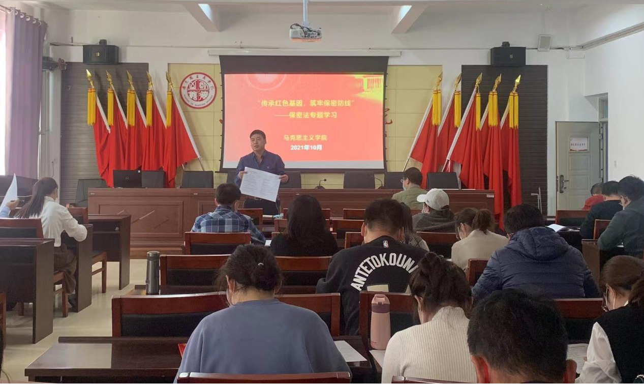 根据内蒙古自治区、学校《关于开展“保密法宣传月”活动的通知》文件要求,为进一步贯彻落实保密法治宣传精神,切实增强全体师生的保密法治意识,广泛普及保密常识,全面提升保密业务工作能力。10月28日,壹贰博 组织开展“保密法宣传月”专题活动,主题为“传承红色基因,筑牢保密防线”,全体教职工、全体党员参加。