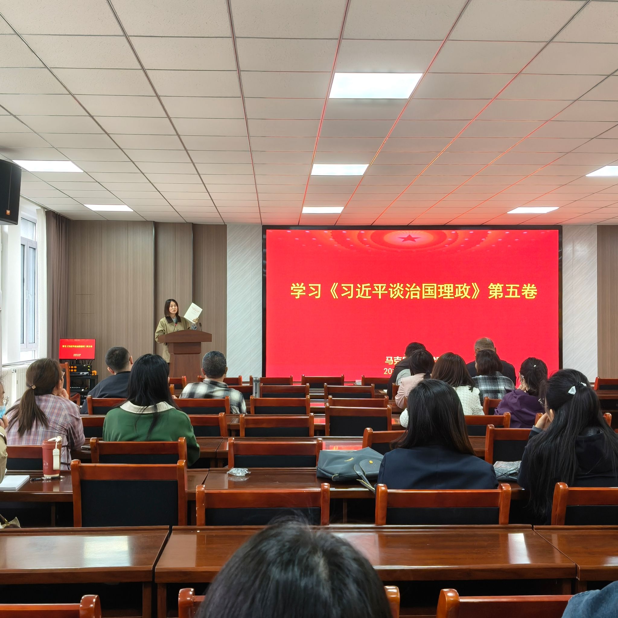 党委在秋实楼扩502会议室召开党委理论学习中心组学习研讨会,深入学习研读《习近平谈治国理政》第五卷,中心组成员围绕学习内容结合思想和工作实际,依次交流研讨。