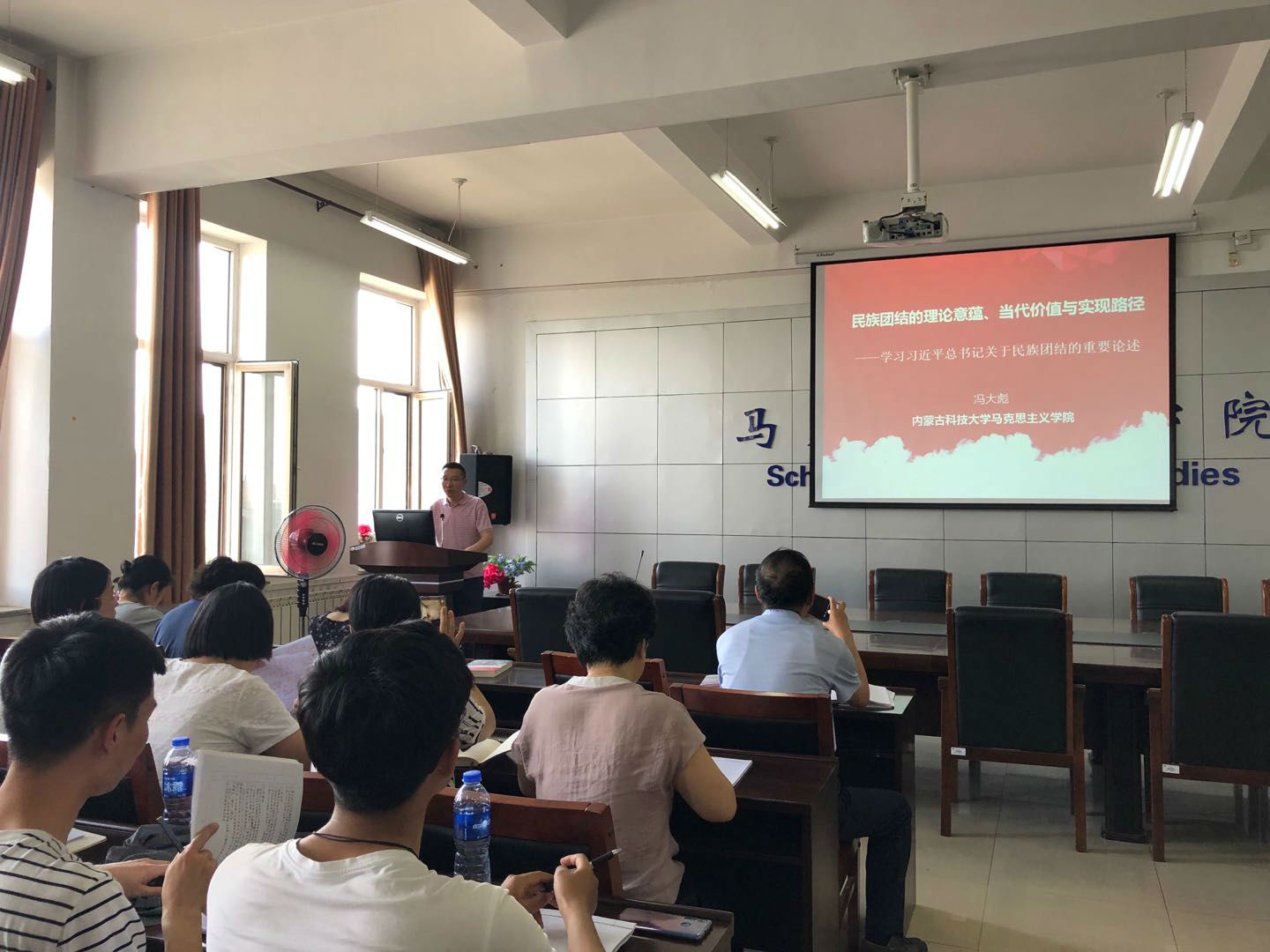 为深入推进“思想再解放笃行新发展理念,推动高质量发展大学习大讨论”,6月6日壹贰博 在腾飞楼C座517会议室举办民族团结相关专题讲座。壹贰博 党总支书记刘玉明主持讲座,讲座由壹贰博 副教授冯大彪主讲,讲座题目为《民族团结的理论意蕴、当代价值与实现路径——学习习近平总书记关于民族团结的重要论述》,讲座分为三个方面,分别是民族团结的理论意蕴、民族团结的当代价值、民族团结的实现路径。全体教师参加本次讲座。同时,本次讲座也作为民族团结教育的主要内容,学生党员、少数民族学生代表聆听本次讲座。