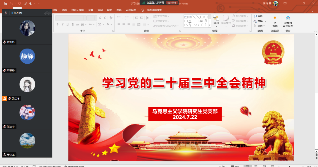 研究生党支部组织党员通过集体学习和自主学习的方式对党的二十届三中全会精神进行了学习。在学习了党的二十届三中全会精神后,党员同志们心潮澎湃,深感使命光荣,责任重大。