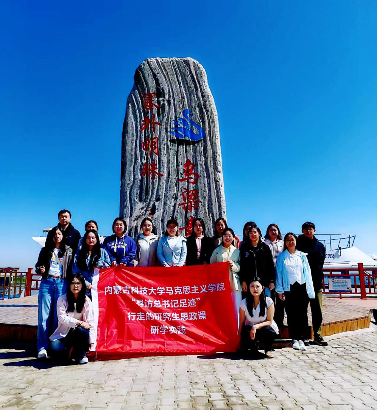 研究生沿着习近平总书记考察内蒙古的足迹,先后来到巴彦淖尔乌梁素海生态保护区、现代农业示范园区、国营新华林场和黄河水利文化博物馆,开展“寻访习近平总书记足迹”行走的思政课研学,在实地探访中深刻感悟和学习领会习近平生态文明思想在内蒙古的生动实践。
