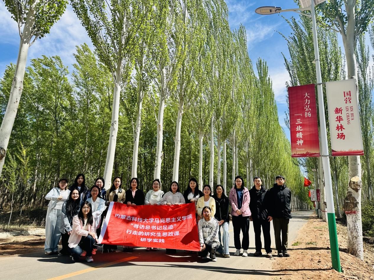 研究生沿着习近平总书记考察内蒙古的足迹,先后来到巴彦淖尔乌梁素海生态保护区、现代农业示范园区、国营新华林场和黄河水利文化博物馆,开展“寻访习近平总书记足迹”行走的思政课研学,在实地探访中深刻感悟和学习领会习近平生态文明思想在内蒙古的生动实践。